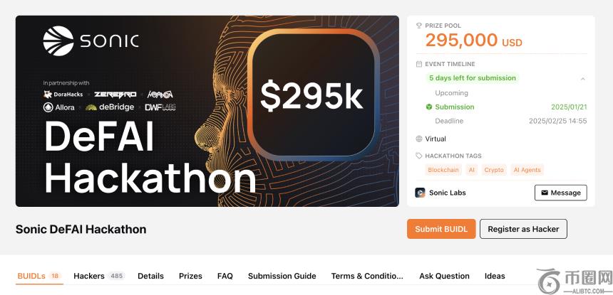为了吸引更多开发者和用户,Sonic还举办了DeFAI黑客松和Sonic Meme Mania大赛。黑客松奖金高达29.5万美元等值的$S**,吸引了18个AI项目和485名技术人员的关注;Meme大赛则提供100万$OS作为奖金,目前参赛项目的**市值接近700万美元。