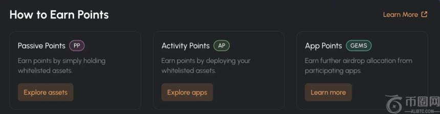 - 活动积分(AP):在参与项目中提供白名单资产作为流动性。