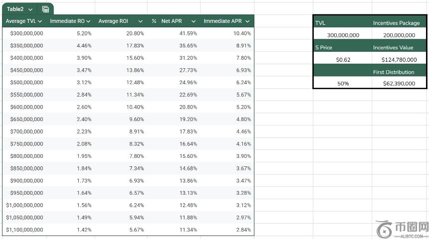据链上分析师@phtevenstrong的估算,当TVL达到3亿美元时,用户可获得额外20%的年化收益率(APR);当TVL达到5亿美元时,额外APR为12.5%。