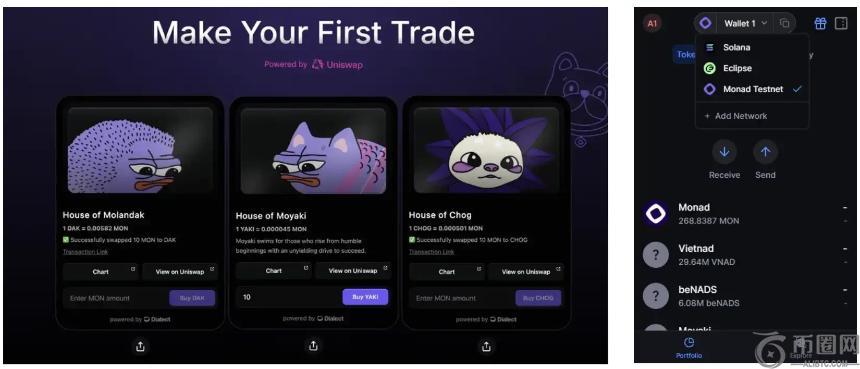 作为一个尚未上线主网的新兴 L1,Monad 凭借去年 Paradigm 领投 2.25 亿美元融资和「以太坊高性能进化者」叙事,已积累了大量社区期待。为了这次测试网,Monad 团队也是做足了准备,刚上线就触发一套连招维持社区关注和好感。Monad 官方在社交媒体上宣布,已向超过 880 万个活跃以太坊地址发送测试币,同时 Backpack 钱包已率先支持 Monad 测试网,而 Wormhole 也正式上线 Monad 测试网。