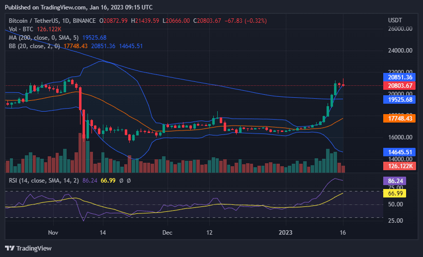 在过去的 24 小时内,BTC 价格在触及 21,345 美元的高位后一直横盘整理。然而,链上数据和分析师认为比特币还有更多上涨空间。到 2023 年年中,BTC 价格能否升至 65,000 美元以上?