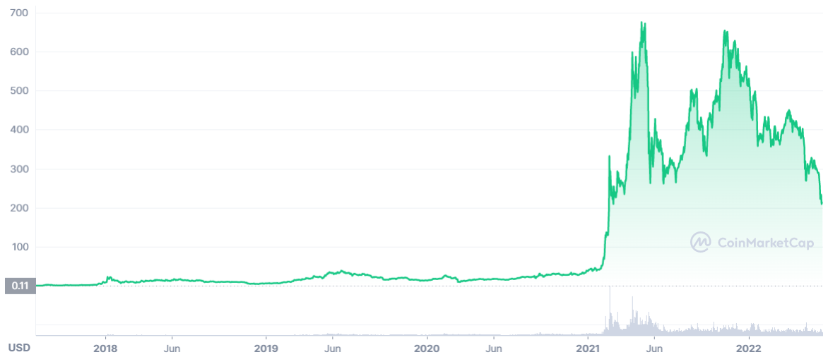 在了解币安币价格预测之前,我们先了解一下BNB的基本信息。Binance 是世界上**的加密货币交易所之一,其**是按市值计算的加密货币排名前 5 名的常规参与者。该**去年达到**汇率——大约一年前为 686 美元,然后开始下跌,跌幅超过 57%。BNB 硬币是 Binance 交易所内的主要记账单位。