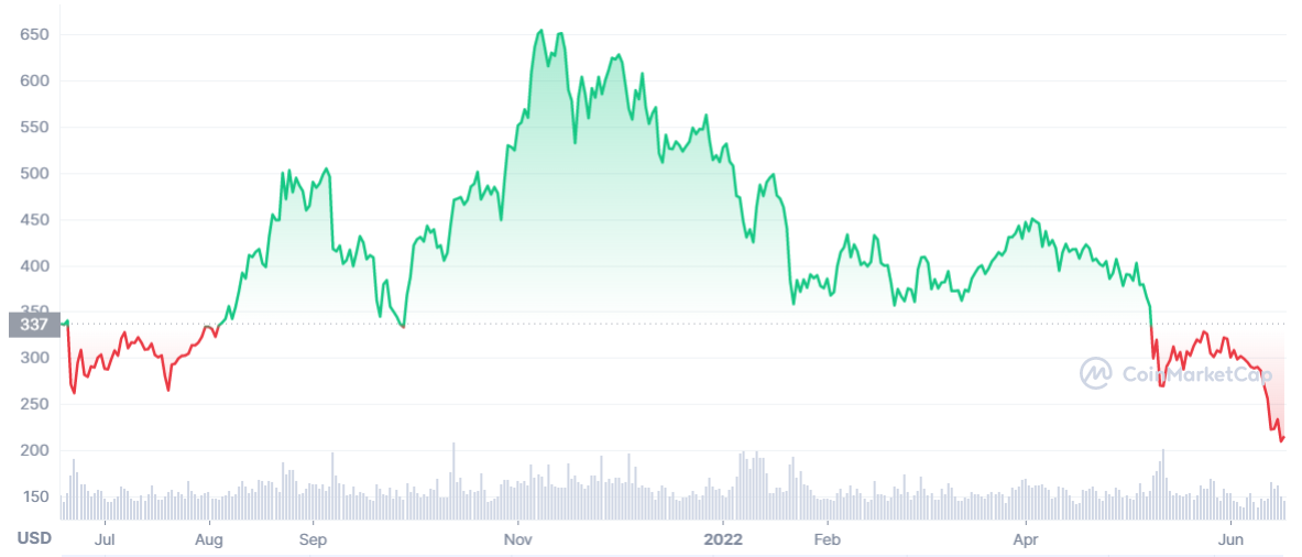 近一年币安币(BNB)价格走势图