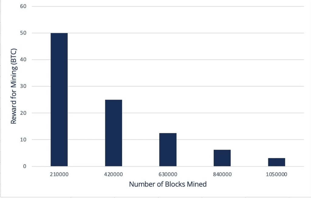 BTC区块链使用工作证明机制来验证网络上的交易。这种验证工作由矿工执行,因此他们完成每个区块都会获得奖励。当该网络最初推出时,矿工可获得50枚BTC的奖励,直到区块链的区块数增加到21万时发生**BTC减半时才开始减少奖励。