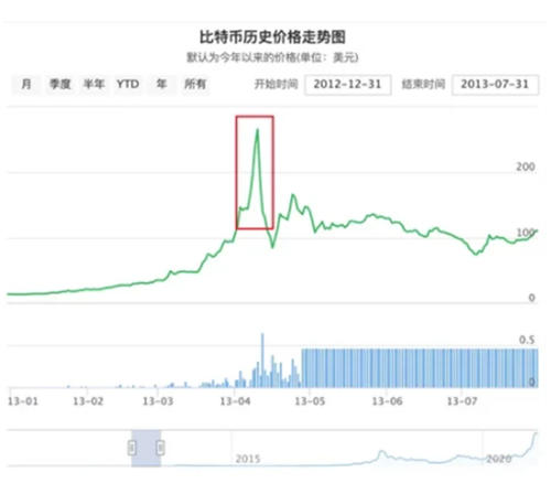 政府部门不当的措施导致了群众很大的焦虑,及其对银行产品安全性明显怀疑,这时一部分爱沙尼亚群众看到了不同于主权货币以外,且处在价格升高周期BTC,因为BTC“区块链技术”、“总产量稳定”的特性,让许多群众觉得BTC也许是解决本次困境的不二之选,于是他竞相购买BTC。3月1日-4月9日,一个多月的日子里,BTC价格从33美元上涨至令人咂舌的235美金。遗憾这种价格并没有支撑多长时间,自此BTC价格又下降到80美金周边。