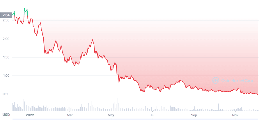 1INCH **最近一次解锁发生在 6 月。在此期间,该**的现货价格下跌了 25%,从 0.81 美元跌至 0.60 美元。由于加密货币熊市普遍,该**的价格今年下跌了 80% 以上。