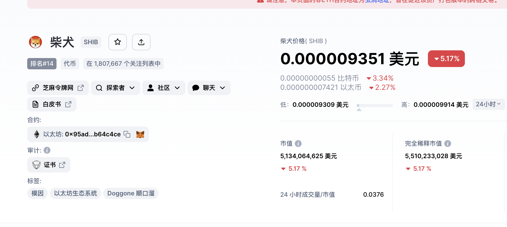 6.截止到2021年5月9日,柴犬币一日内疯涨近1200%。
