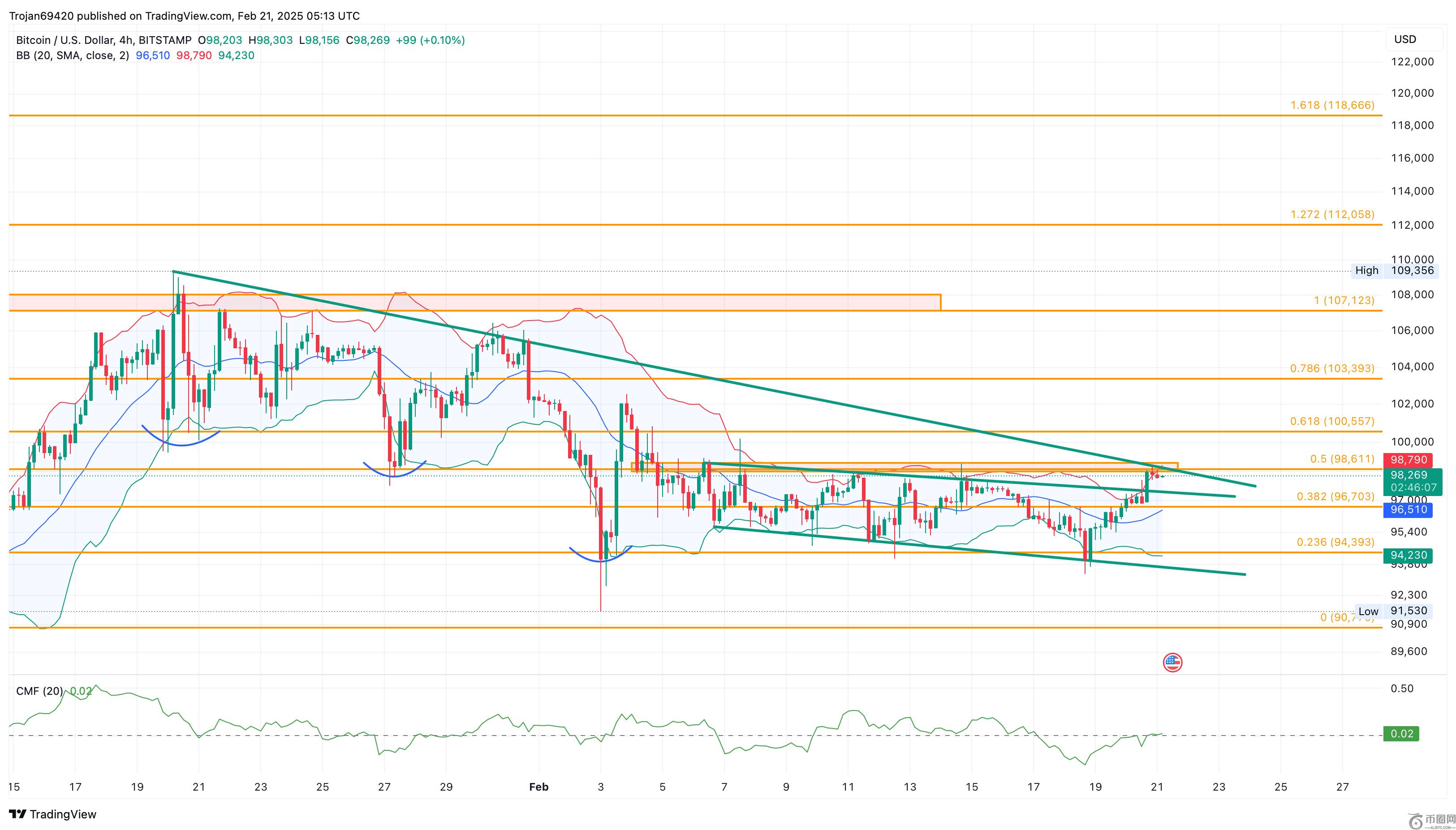 根据斐波那契的水平,直接阻力为98,611美元的突破可能会使比特币达到100,000美元。