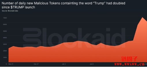 类似情况也曾发生在** (Donald Trump) 于 1/18 推出**币 (TRUMP) 时,与**相关的****从每天 3,300 个暴增到 6,800 个。