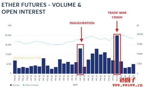 同时,以太坊近期的交易量也相当强劲,尤其是在1 月21 日(美国总统就职日) 及2 月3 日的市场下跌期间,交易量出现显著飙升。