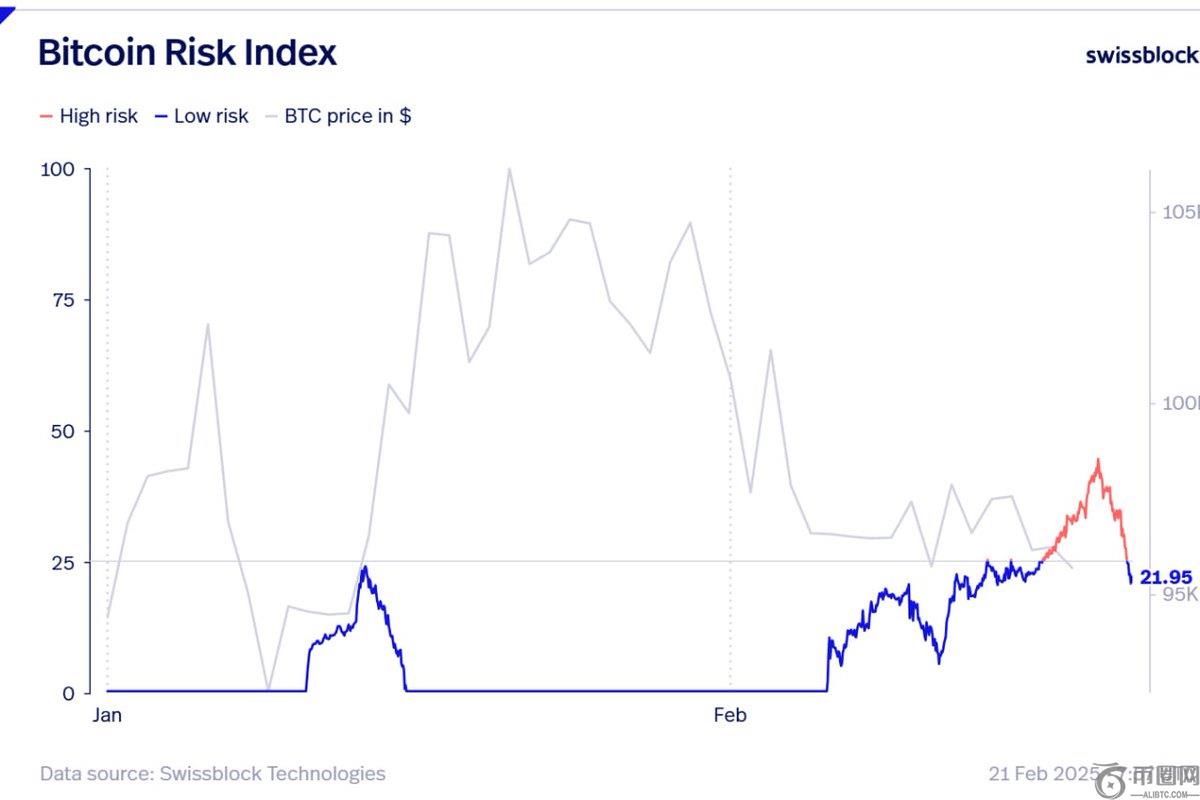 比特币风险信号基于“一组专有指标,包括比特币价格数据,链上数据和其他交易指标的选择”,衡量了BTC是否有大量价格**的风险。