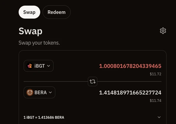 即便选择“挖提卖”策略,iBGT当前价值仍高于BGT。根据BEX兑换比率,1枚iBGT可兑换1.4枚BERA。