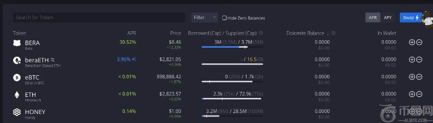 Dolomite是Berachain上的借贷协议,总融资额达340万美元。目前其TVL已超10亿美元,存款BERA可享受超30%的APR,但存款上限为500万枚。
