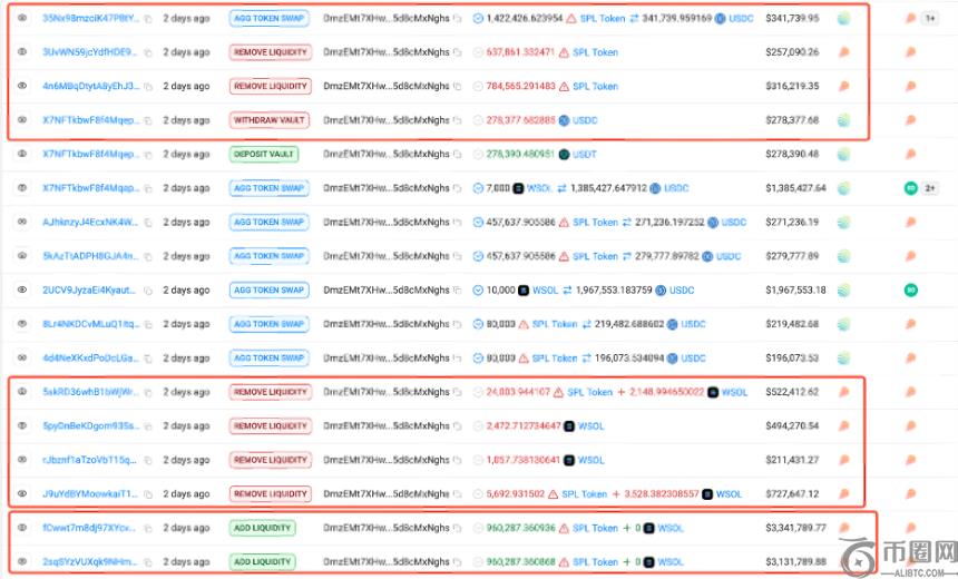 同时,项目方的获利更为可观。开发者地址(DefcyKc4yAjRsCLZjdxWuSUzVohXtLna9g22y3pBCm2z)同样利用单边流动性机制,将**添加到 Meteora 池子中,仅手续费收入就达到一千万美元。