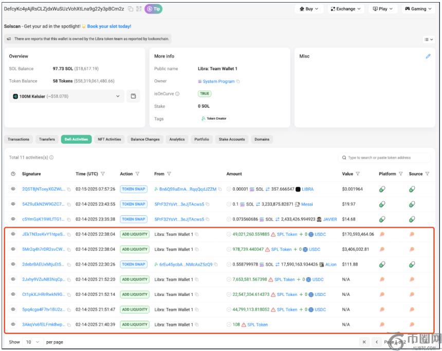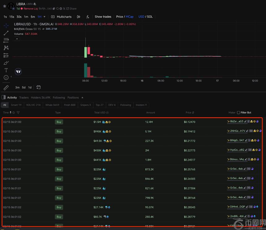 - $LIBRA 于 14 号创建**,15 号开盘前 20 分钟才创建交易池:查看详情