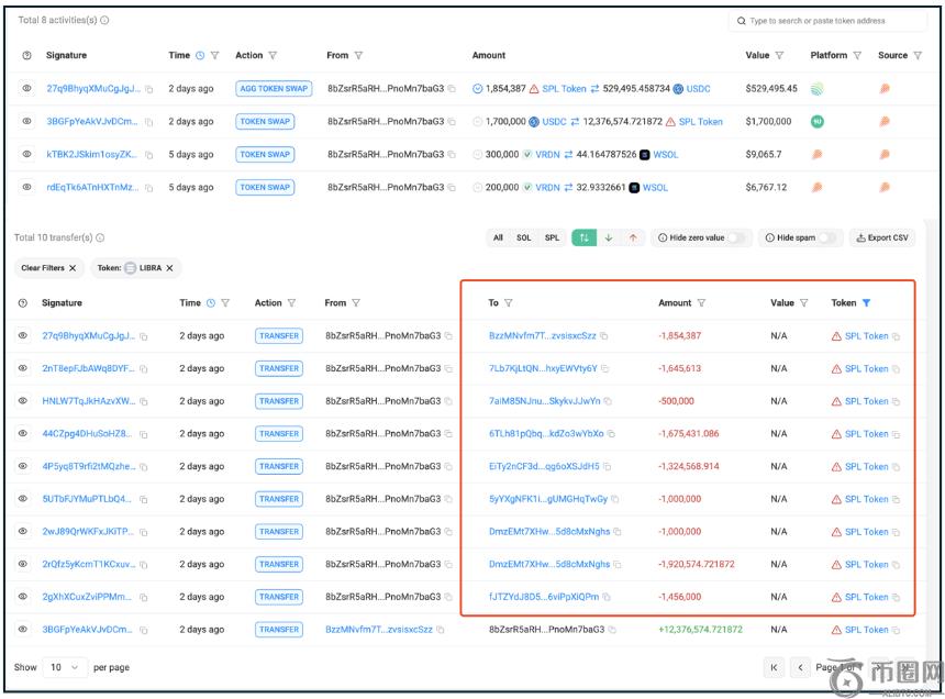 开盘后 5 小时内将所有 LIBRA 和获得的 SOL **转换为 USDC,获利 500 万美元。