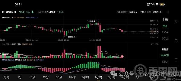 比特币(BTC)2月24日行情分析:根据技术指标分析,比特币价格目前在95400比特币点附近波动,4小时行情呈现震荡上涨趋势。