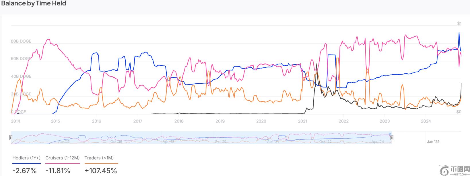 数据按时间持续的狗果平衡,揭示了对改变市场动态的进一步见解。最近下降了2.67%,显着下降了11.81%,在不同的持有类别中显着增加了107.45%。