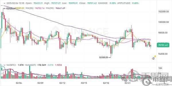 文章标题:2月24日加密货币分析:BTC跌至95000 美元,ETH突破2700美元!S上涨12%,CRO上涨5%