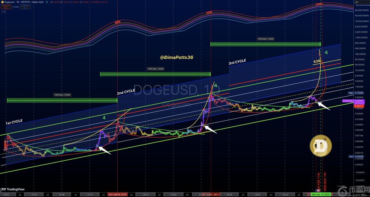 市场专家Dima Potts在X帖子2月23日,以周期性的重复。他建议Dogecoin是市值**的模因硬币,将无视其当前看跌势头对于惊人的19,533%的上升趋势。