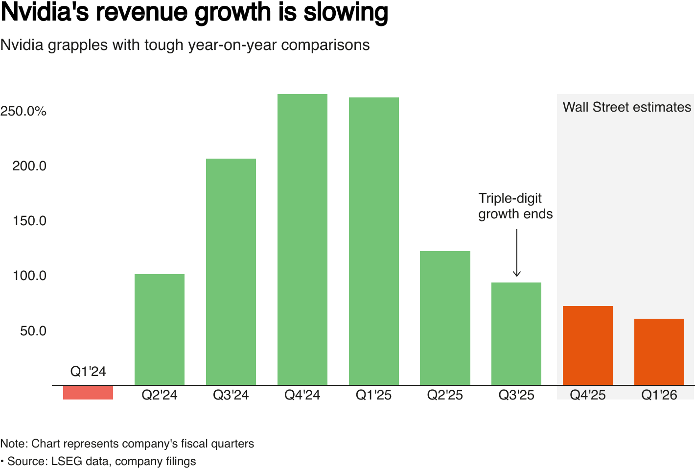 预计该公司将预测4月结束的**季度收入增长60%。这将偏离NVIDIA的先前趋势,因为该公司在截至10月的期间连续五个季度经历了三位数的收入增长。
