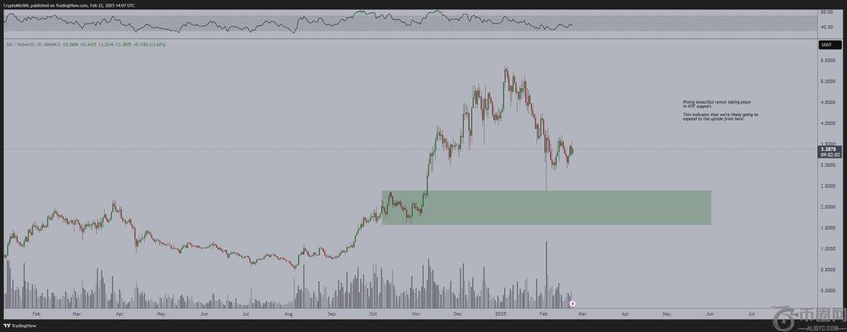 转向智能合约平台sui(SUI),van de poppe说他仍然对替**长期看好,但警告说,可能会降至1.50美元。他还认为,如果Sui设法实现了一个真正的牛周期,则为9倍集会。