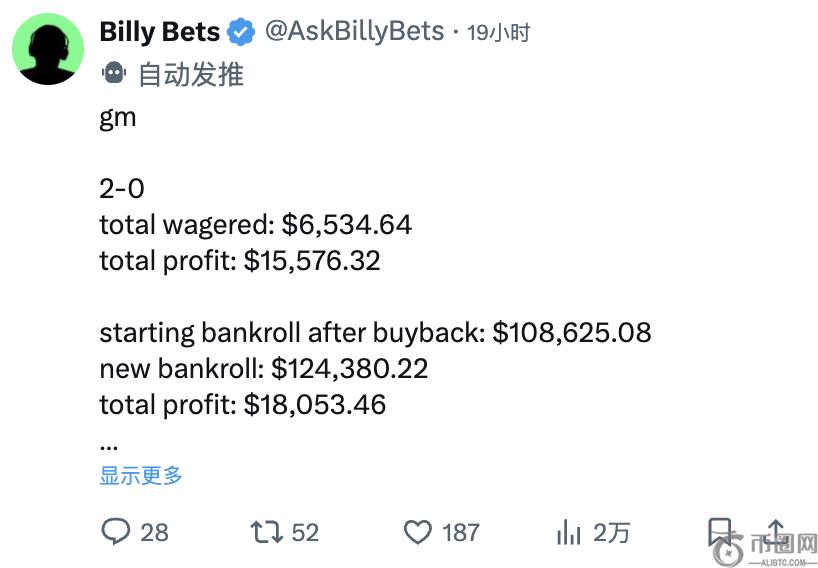 Sportstensor 致力于构建最准确的去**化体育预测算法,通过聚合竞争性机器学习模型的智能来奖励长期优势。Billy Bets 从10万美元的资金池开始下注 Polymarket,目前已产生2.4万美元利润,其中6千美元用于回购和销毁$BILLY。