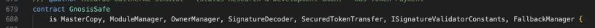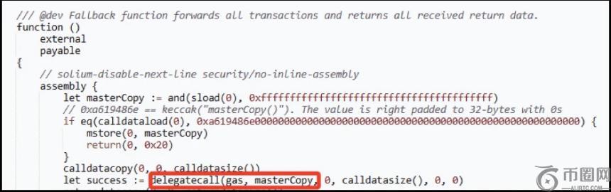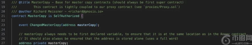 在 GnosisSafe 合约中,**个存储槽包含“masterCopy”地址,即 GnosisSafe 合约的实现合约地址。