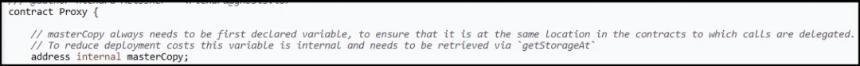 通过修改 Gnosis Safe 合约的**个存储槽,攻击者能够改变实现合约地址(即“masterCopy”地址)。