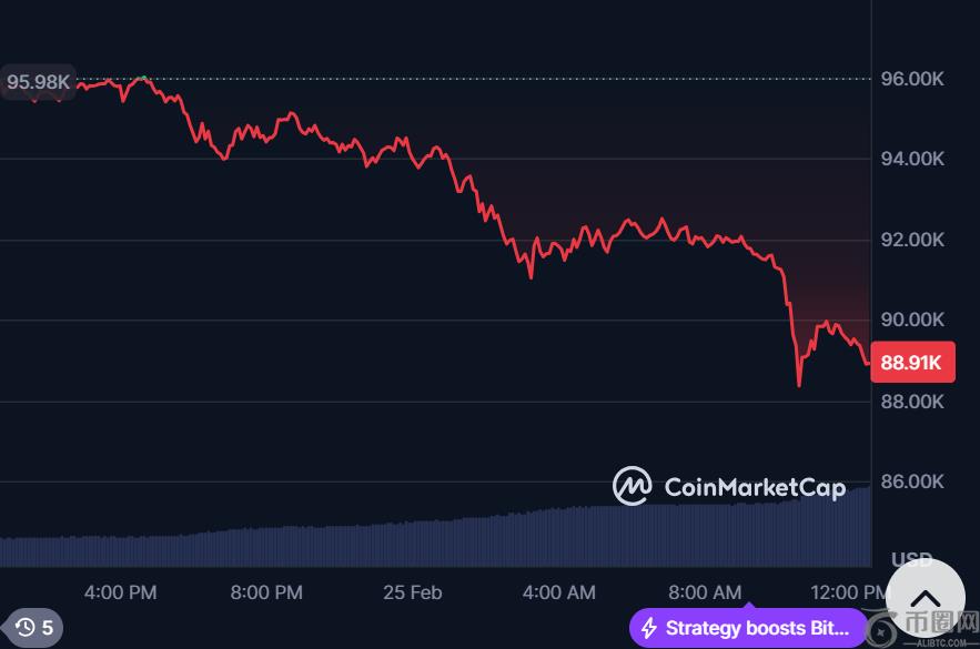 比特币仍以红色交易。今天早些时候售价为88,200美元。这是11月中旬以来的**水平。昨天,下降了4.89%。价格下跌导致加密货币市场的销售浪潮在过去24小时内损失了13.4亿美元和367,500名买家。
