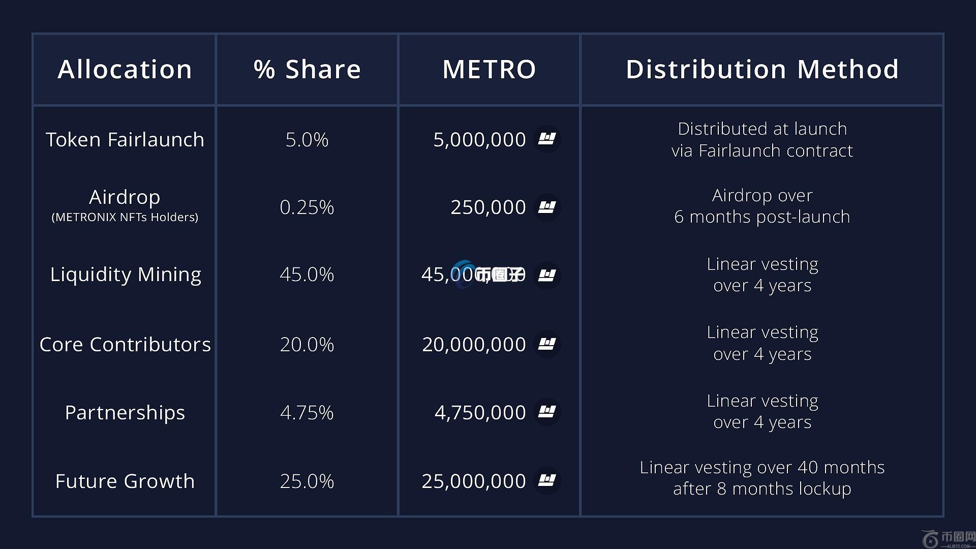 据官方介绍,METRO总量1亿枚,**分配如下: