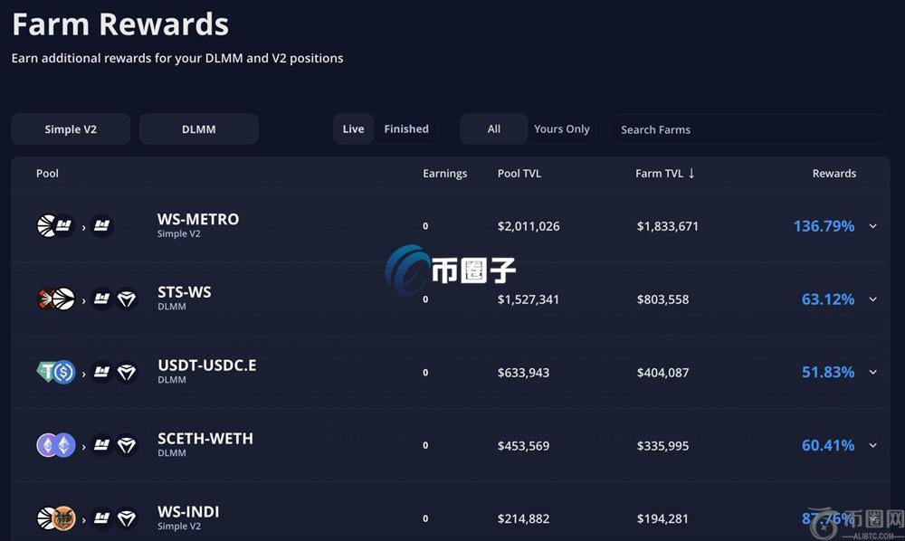 进入Metropolis官网后,点选上方「Earn」进入「Farms」画面