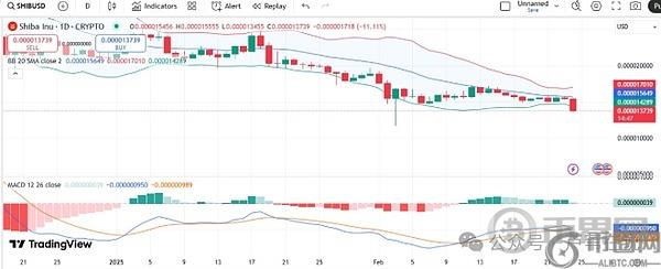 从技术指标来看,SHIB价格呈现看跌势头。布林线扩大,价格低于中轨,MACD指标处于负值区域且MACD线位于信号线下方,直方图也显示看涨势头减弱。这些因素均表明SHIB价格承压,但布林带下轨可能为买盘提供**支撑。