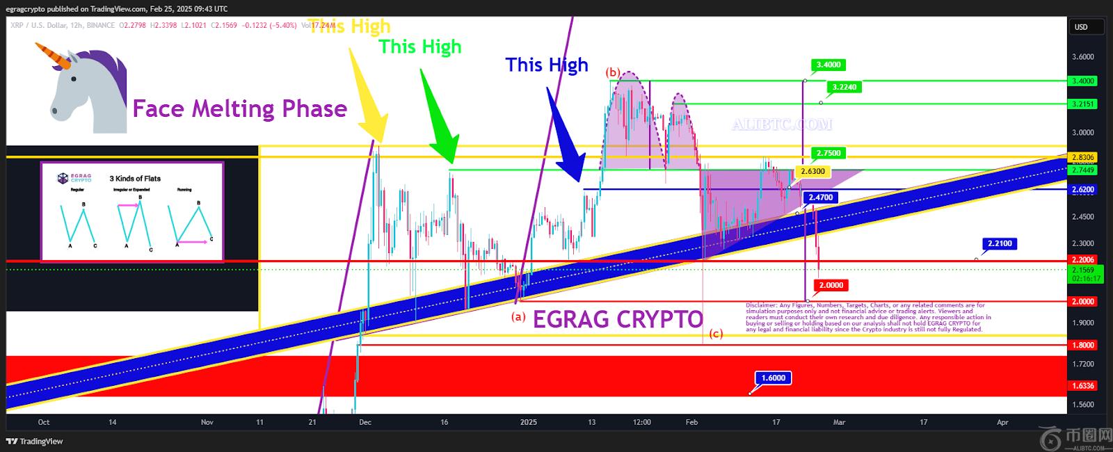 目标由三角形**点和很高点之间的距离设定,约为 1.50 美元,比当前价格下跌约 30%。一些分析师还预测 XRP 将进一步下跌,理由是图表技术因素和关键支撑位的丧失。