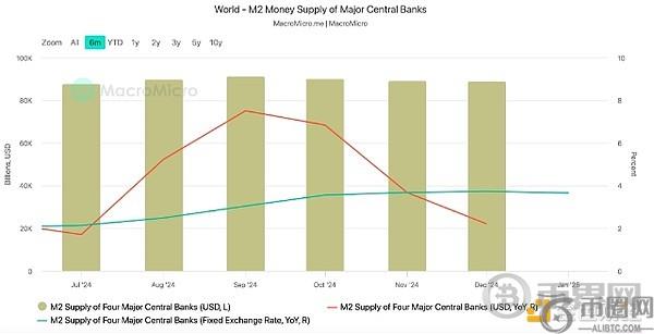 “并非全是厄运和悲观,”他补充道。根据 MacroMicro 的数据,四大央行 1 月份 M2 货币供应量同比固定汇率达到 3.65%。