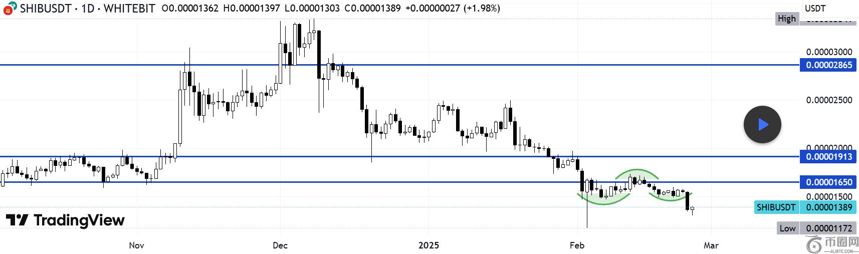 目前的交易价格为0.00001426美元,shiba inu趋势在支撑级别为0.0000147美元。评论员断言,**的模因硬币需要保持这一水平,以快速的价格反弹。