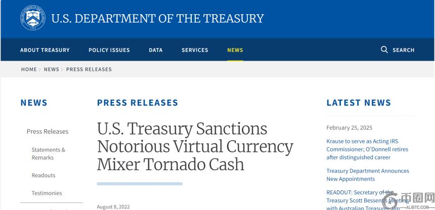 2022年8月,美国财政部海外资产控制办公室(OFAC)制裁Tornado Cash,禁止美国企业和公民与其交互,并冻结其在美国境内的资产。2024年5月,荷兰法院认定Tornado Cash创始人Alexey Pertsev协助**22亿美元加密货币,判处其64个月监禁。