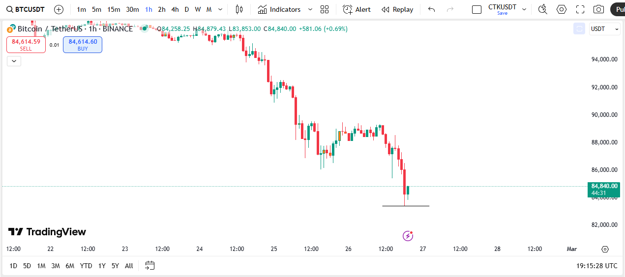 文章标题:随着贸易商对冲,比特币低于$ 84K,降至70k美元
