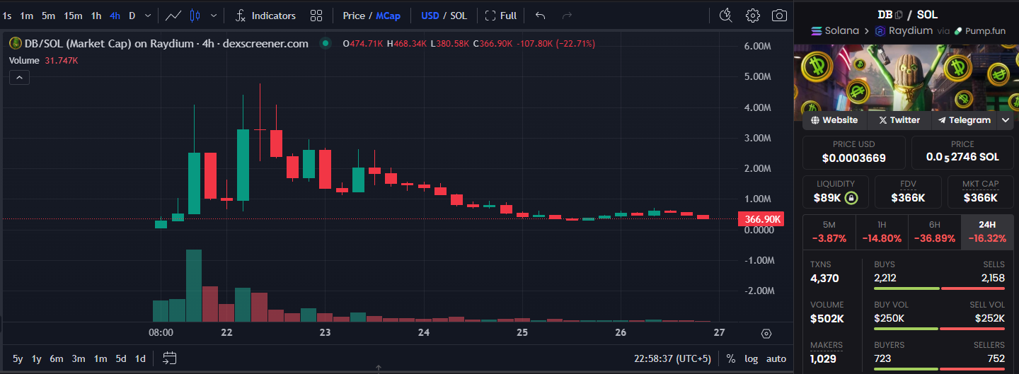 pump.fun允许**人只需单击几下创建一个模因硬币。但是,鉴于Fortnite的病毒潜力,Meme Coin(DB)不需要很长时间才能引起注意和泵。经过24小时的创造,模因硬币已经倾斜到478万美元的市值。