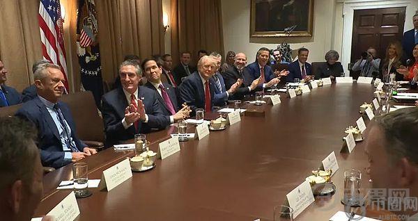 虽然不是内阁成员,但世界首富马斯克以“政府效率部”人员的身份列席会议,和内阁**的助手们一起低调坐在会议室角落里。