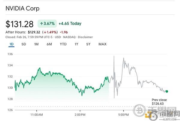 据 Google Finance 称,Nvidia Corp (NVDA) 股价于 2 月 26 日收盘上涨 3.67%,至 131.28 美元。