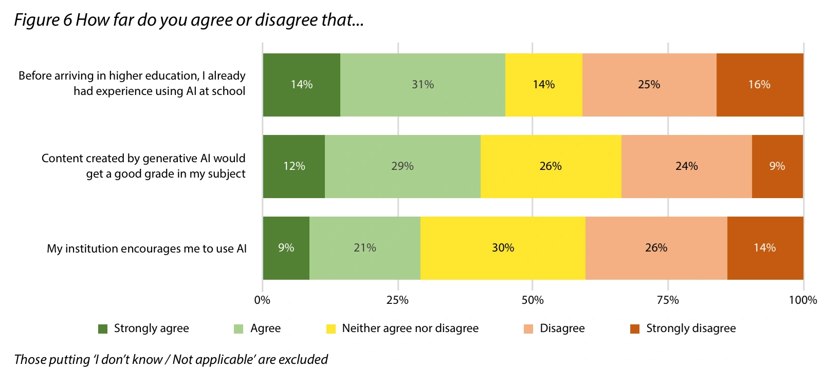 80%的学生承认,他们的机构已经建立了明确的AI政策,而去年有64%的学生。