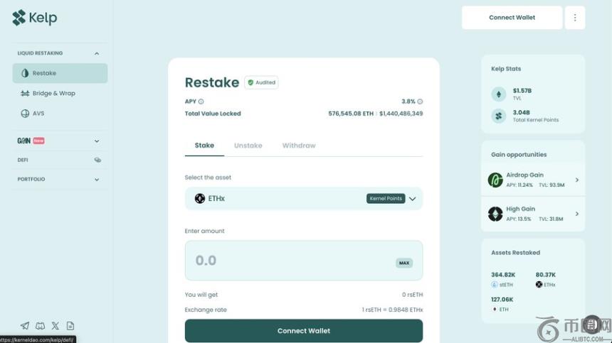 Kelp是一个重质押协议,支持以太坊和其他资产的流动性重质押。它与EigenLayer集成,允许用户在保持流动性的同时赚取额外收益。