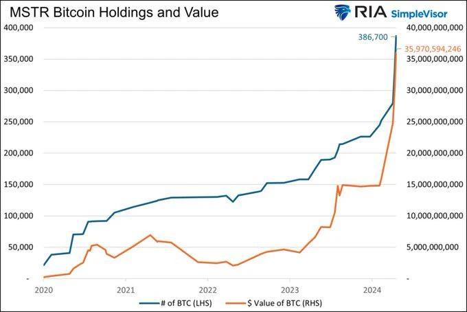• 截至 2024 年底,MicroStrategy 持有的比特币账面价值约 239 亿美元(计提减值后),但按市场价格计算约 417.9 亿美元。