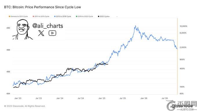 “如果比特币遵循2015-2018周期,这可能会暗示在市场上方增长更多的空间!”