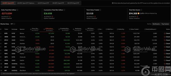 借助另一次看跌流出,美国现货比特币ETF在2月27日损失了2.7583亿美元。但是,与前三个交易日相比,强度大幅下降。