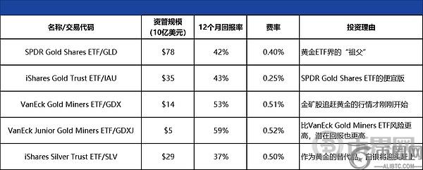 担心黄金在上涨后失去动力的投资者可以选择白银。白银的工业用途比黄金多,但这两种金属的价格走势相似。由于**制造业的白银需求减少,今年白银期货仅上涨6.8%,而黄金期货上涨了10%,如果**经济继续复苏,白银期货可能还有更大的上涨空间。投资者可以考虑资管规模为140亿美元、费率为0.5%的iShares Silver Trust。