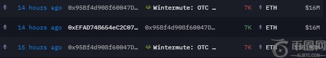 该交易价值约为3192万美元,发生在2月27日,22:58(UTC)。数据来自区块链分析平台Arkham Intelligence表明,钱包背后的用户是0x95b…A90E7,将14,000 ETH转移到Wintermute OTC中,其中两项包含7,000 ETH的单独交易。