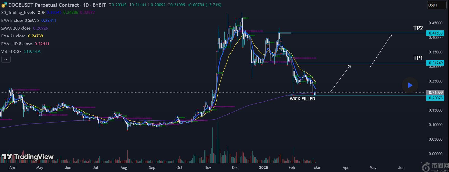 有趣的是,他们坚持认为,像Dogecoin目前展示的每月出现一次一样有吸引力的机会。从当前区域中,分析平台将**个一个过利润目标定为0.31249美元,第二个目标定为0.41533美元。
