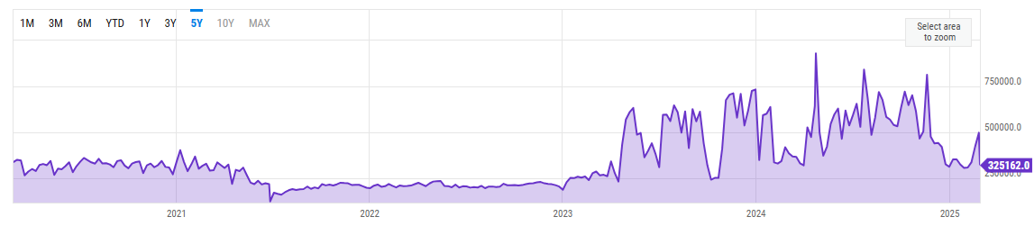 长期活动图表显示,当交易者往返于交流时,BTC在牛市期间获得了更多的转移。 BTC还具有一些残留的序列,符文和其他类型的交易活动,但L1主要用于常规硬币转移。